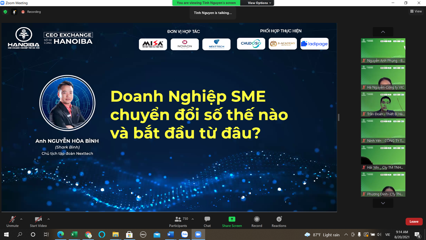 Gần 1.000 là số lượng người tham dự chương trình CEO EXCHANGE cùng HANOIBA số 02 với chủ đề “Chuyển đổi số trong Sales & Marketing cho Doanh nghiệp SME” được HANOIBA tổ chức sáng nay, 20/8. Đây cũng là lần đầu tiên một hội thảo trực tuyến của HANOIBA thu hút được số lượng đông đảo Hội viên HANOIBA và các Doanh nhân bên ngoài tham dự.