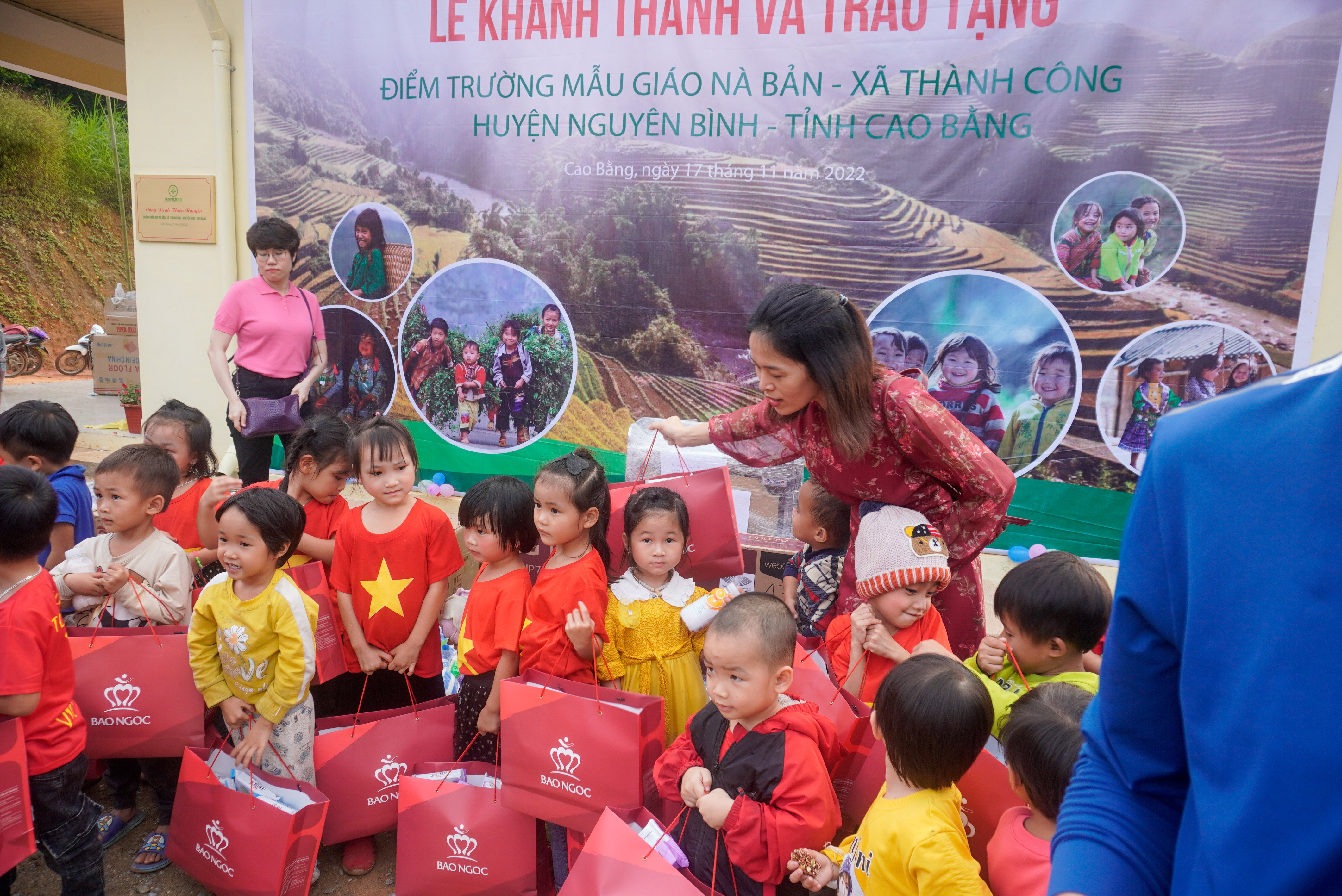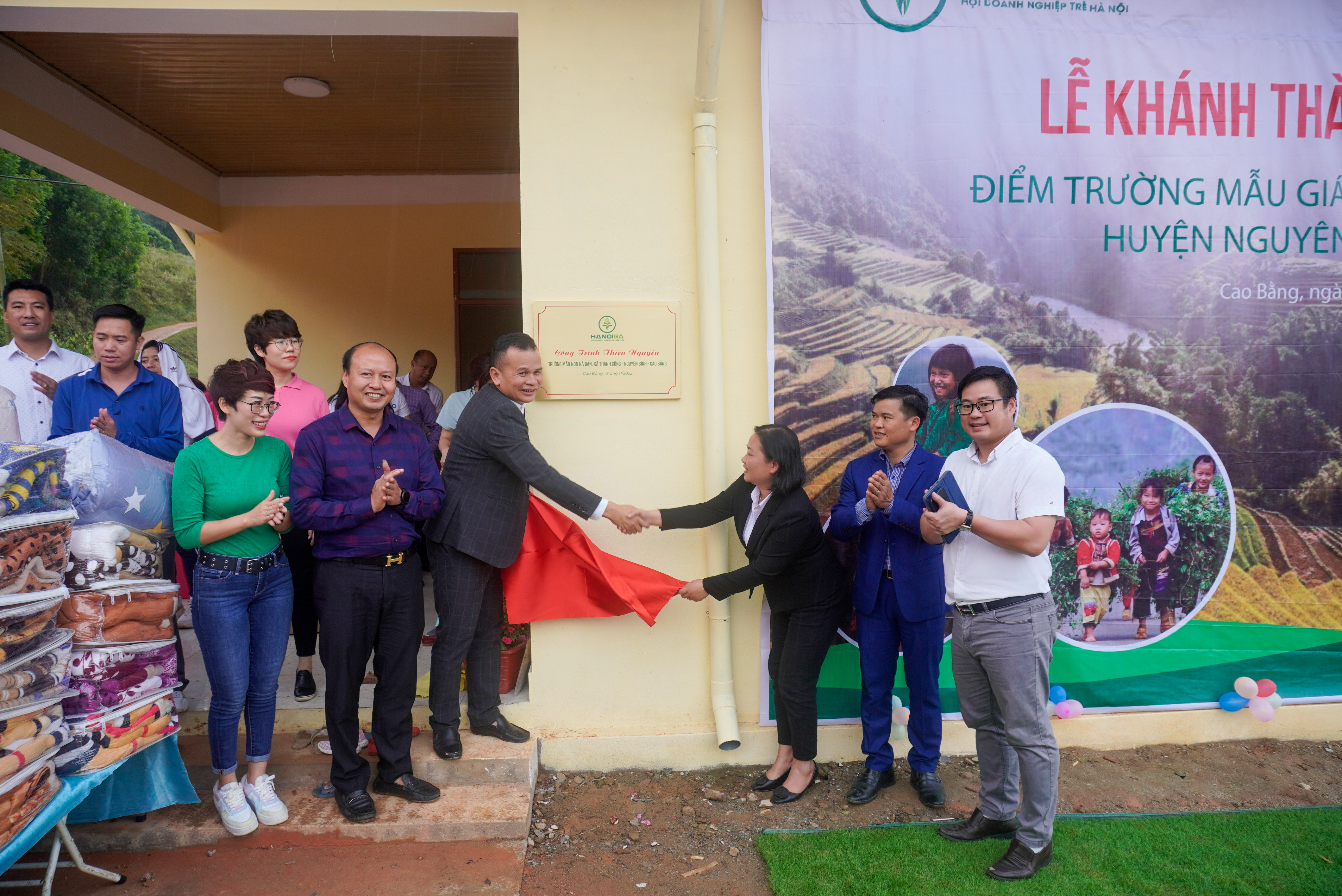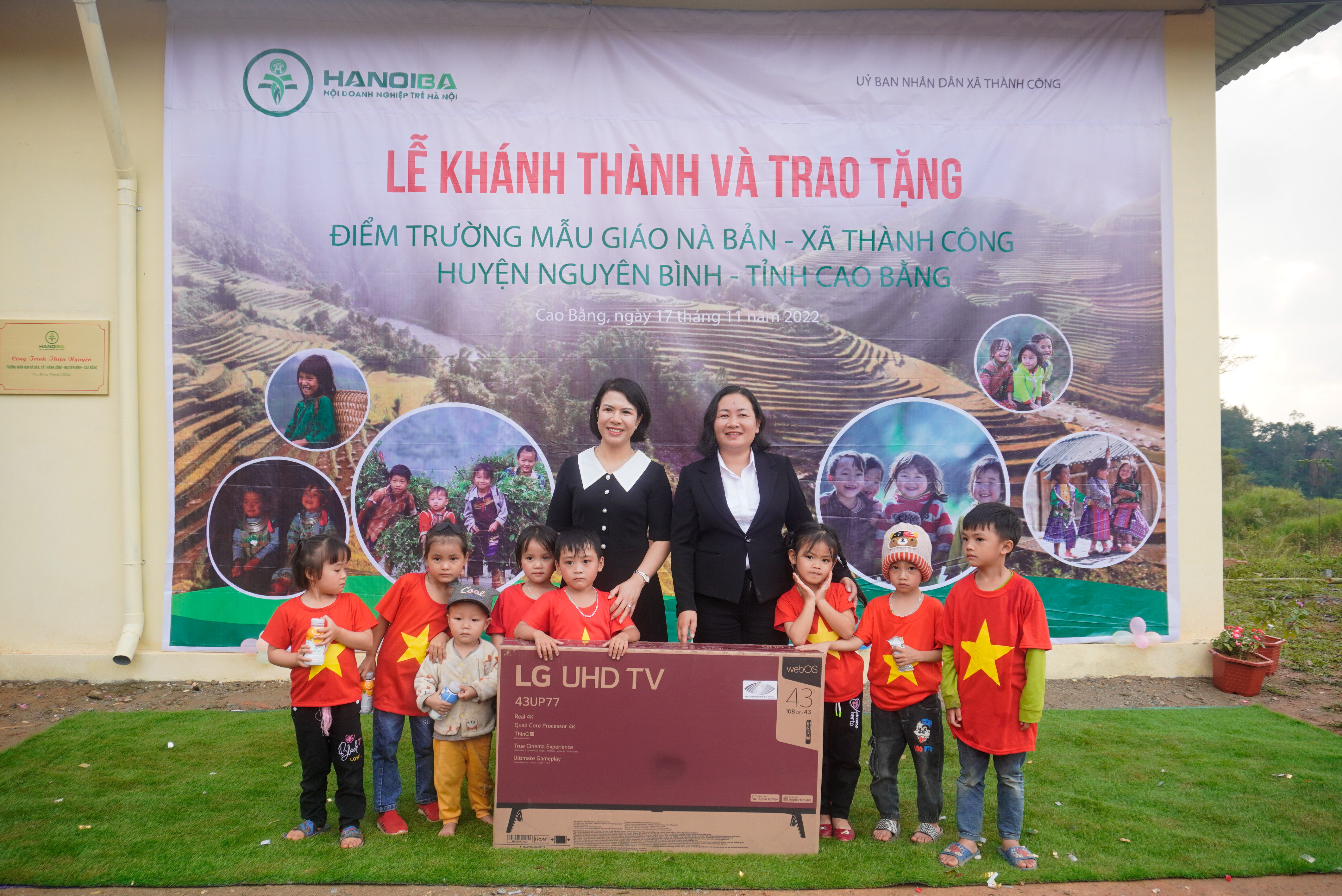 Thay mặt Ban Lãnh đạo Hội Doanh nghiệp trẻ Hà Nội xin được gửi lời cảm ơn chân thành đến sự chung tay của các Doanh Nghiệp Hội viên Hội Doanh nghiệp trẻ Hà Nội đã góp phần hoàn thiện điểm trường mầm non Nà Bản, xã Thành Công, huyện Nguyên Bình, tỉnh Cao Bằng. Vậy là trong năm học mới, các con đã có được một mái trường sạch đẹp, một lớp học kiên cố, chăn ấm, đệm êm, nhiều đồ chơi hơn, nhiều sách hơn. Hi vọng với những món quà này, các con sẽ thuận tiện hơn trong việc học tập và vui chơi.