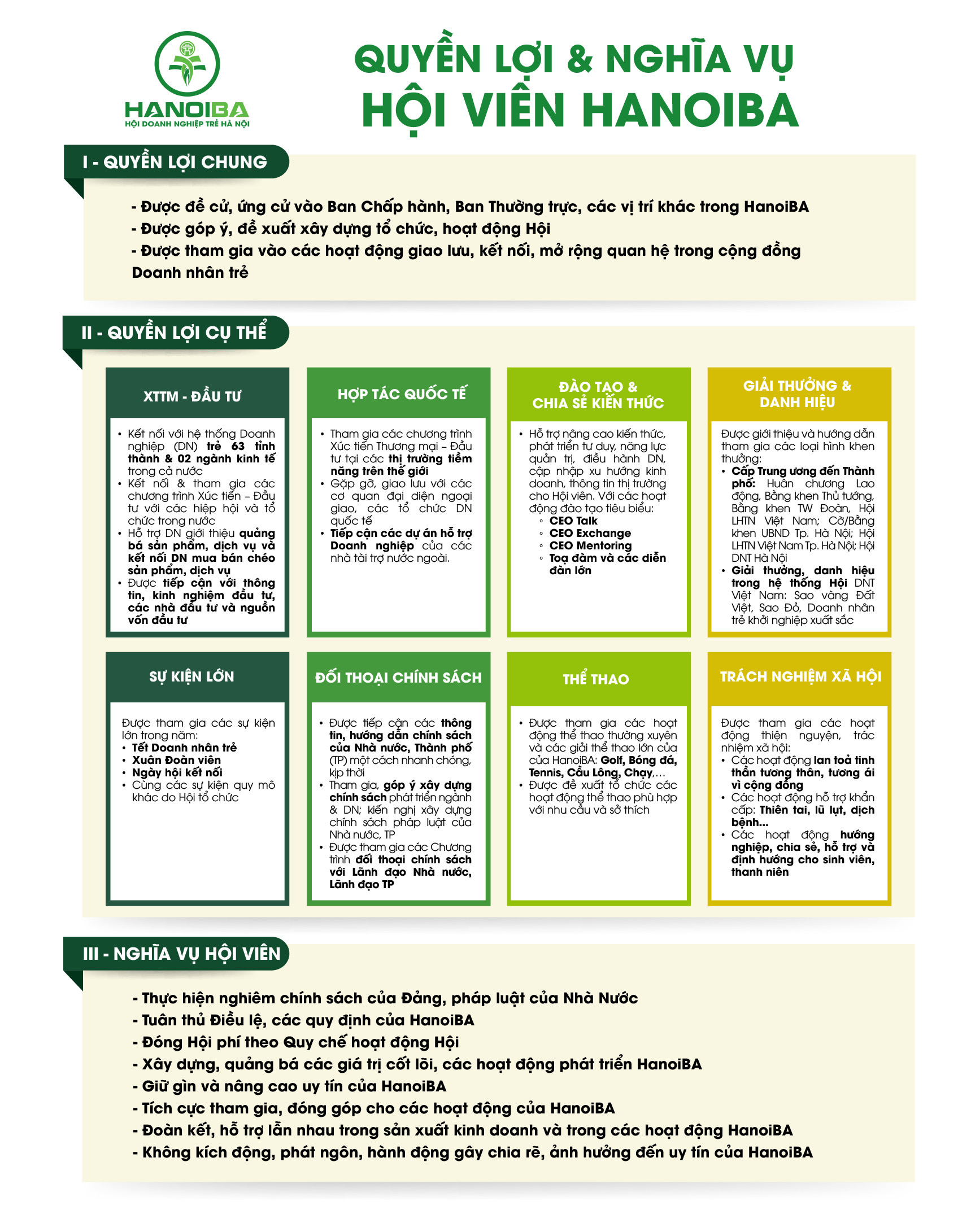 Được đề cử, ứng cử vào Ban Chấp hành, Ban Thường trực, các vị trí khác phù hợp theo quy định của HanoiBA