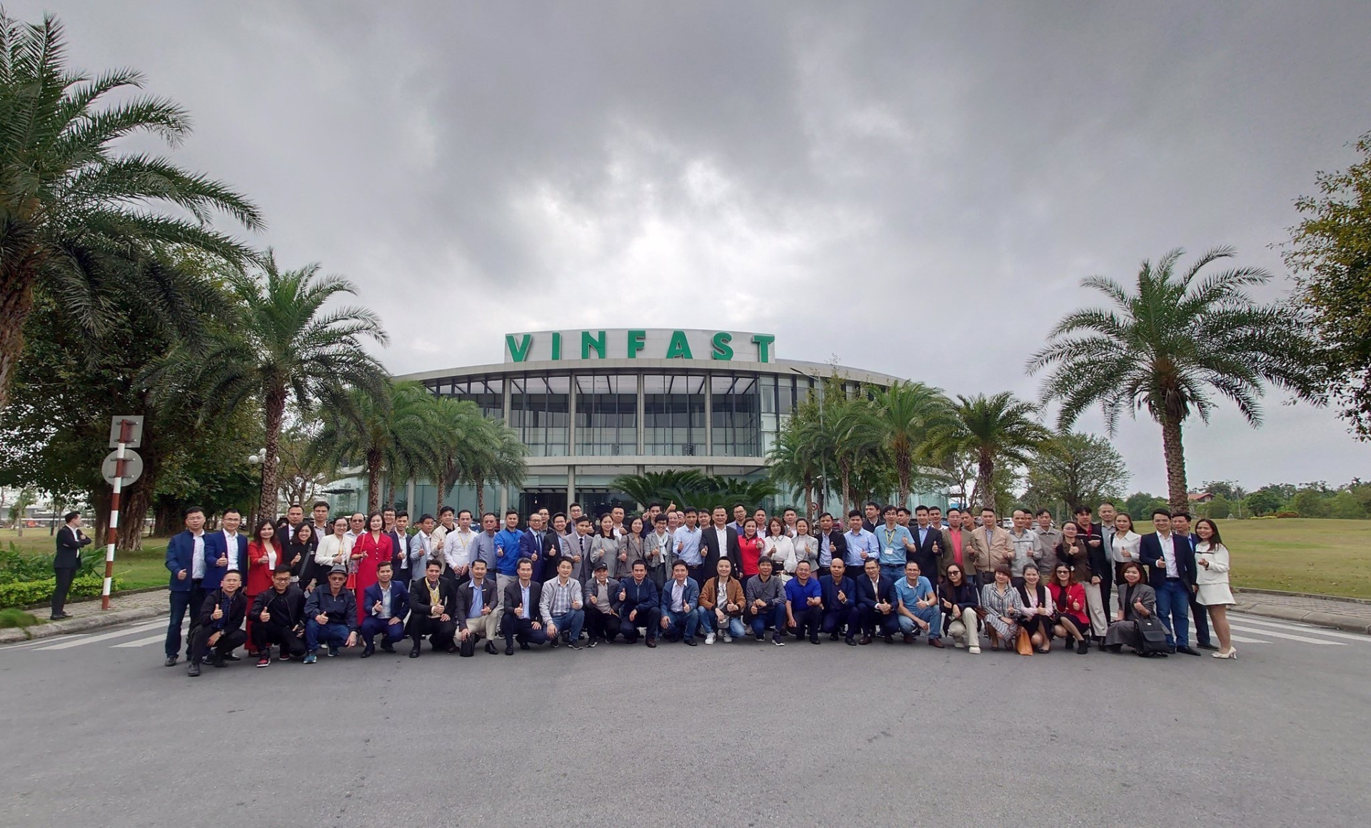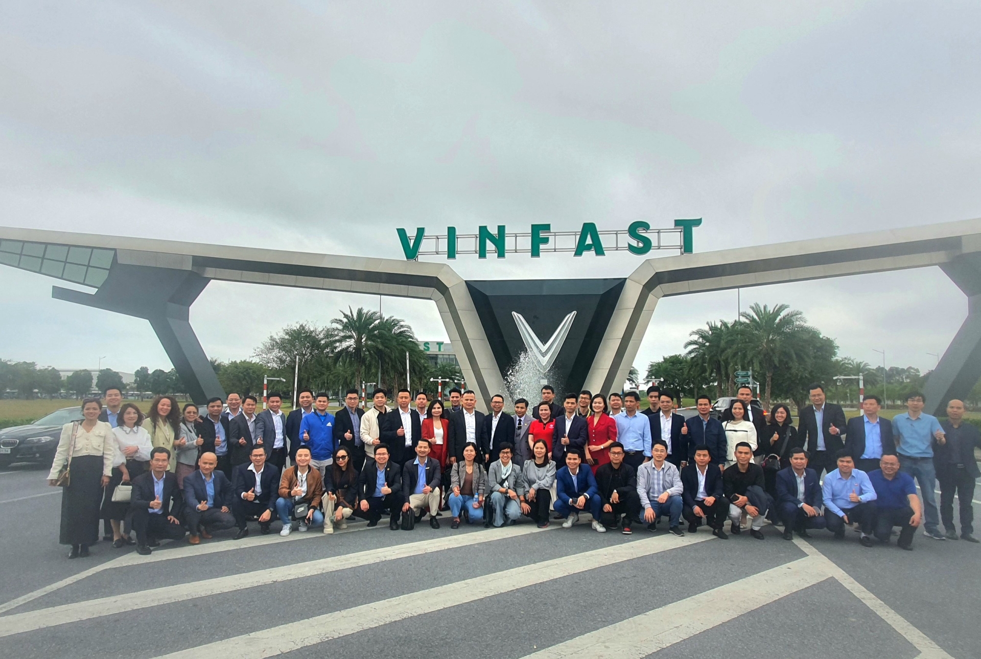 Tiếp sau phần giới thiệu, Đoàn đã đi thăm các xưởng Dập, Hàn, Lắp ráp và xưởng sản xuất xe máy điện. Trên diện tích hơn 300ha, Vinfast có 18 nhà máy sản xuất chính, 13 xưởng phụ trợ cùng 13.000 lao động. Tại các xưởng Dập, Hàn và Lắp ráp, Đoàn HanoiBA đã được thăm các hệ thống máy công nghiệp nặng cực kỳ hiện đại, dây chuyền lắp ráp với hàng ngàn cánh tay robot, hệ thống sản xuất được sắp xếp rất khoa học và quy chuẩn, cùng với các quy trình làm việc “kịp thời, kịp số lượng”, nguyên tắc quản trị 6 Hóa (Hệ thống hoá, hạt nhân hoá, đơn giản hoá, hiệu quả hoá, chuẩn hoá, tự động hoá). Đoàn cũng đã được thực mục sở thị linh kiện, khung vỏ để sản xuất ra các sản phẩm quen thuộc như VF3, VF5, VF7....