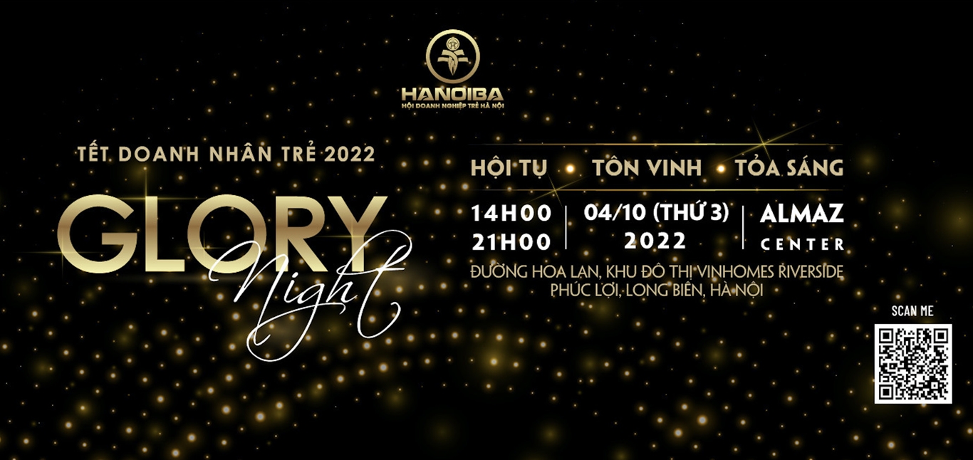 Nhưng Tháng 10 năn nay – Tết Doanh nhân trẻ 2022 sẽ quay trở lại truyền thống đoàn viên bằng một hình ảnh rất mới, rực rỡ hơn, huy hoàng hơn, một đêm Tôn vinh Doanh nhân HANOIBA với Chủ đề “TẾT DOANH NHÂN TRẺ 2022 - GLORY NIGHT”.