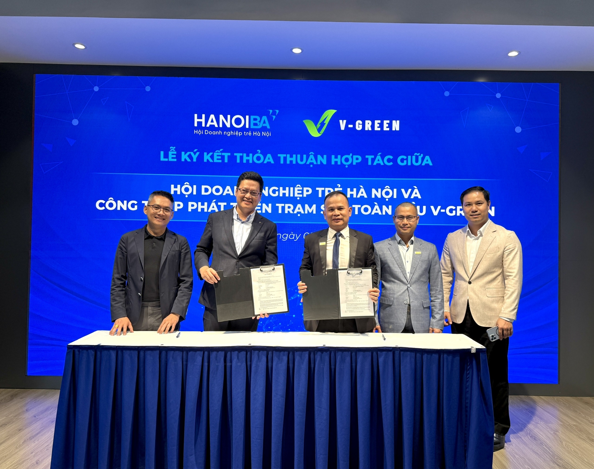 Ngày 04/12/2025 vừa qua, Hội Doanh nghiệp trẻ Hà Nội đã là việc và tiến hành Ký kết Thỏa thuận hợp tác cùng Công ty CP Phát triển tram sạc toàn cầu V – Green (V – Green). Đây là đơn vị trong hệ sinh thái của Tập đoàn Vingroup, tiên phong đầu tư – phát triển mang lưới trạm sạc điện và tủ đổi pin cho phương tiện giao thông xanh trên toàn quốc.