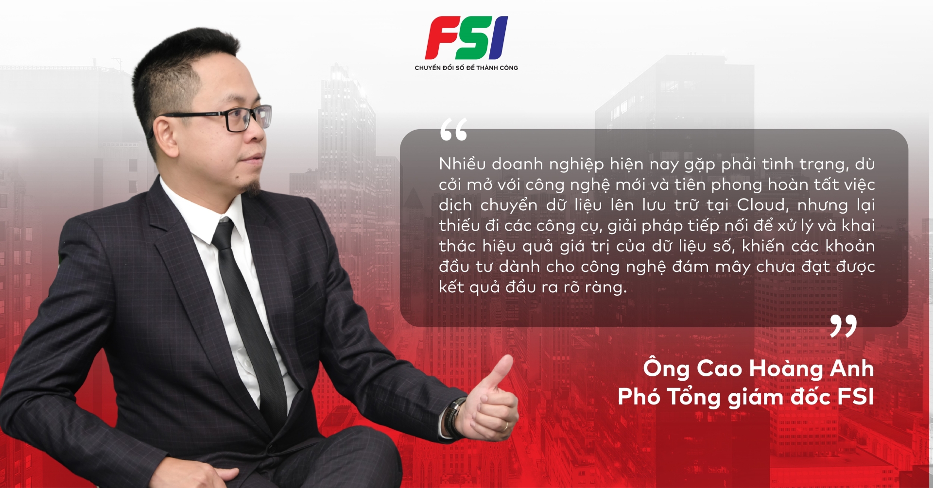 Trao đổi về những ứng dụng thực tiễn của FSI Cloud, ông Cao Hoàng Anh - đại diện FSI – cho biết: “Giải pháp Cloud của FSI không chỉ cung cấp một hệ thống lưu trữ dữ liệu tập trung, đáng tin cậy với độ bảo mật cao, công nghệ hiện đại, phù hợp với mọi quy mô tổ chức cùng chi phí linh hoạt theo nhu cầu sử dụng của doanh nghiệp. FSI Cloud còn tích hợp bộ công cụ và giải pháp khai phá dữ liệu hiệu quả, giúp xây dựng nên những doanh nghiệp vận hành tối ưu dựa trên dữ liệu thời gian thực, hay còn gọi là các Data Driven Business.”