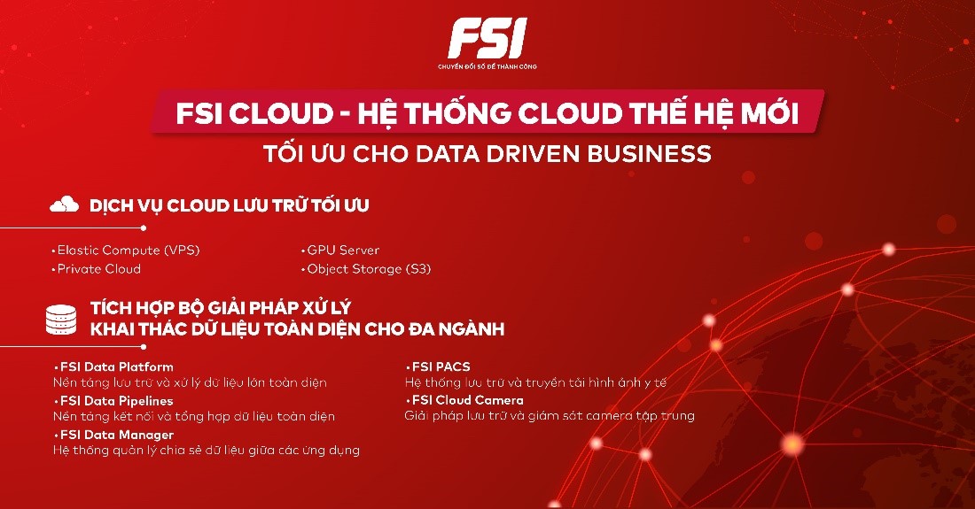 Là kết tinh của hơn 15 năm kinh nghiệm hoạt động trong lĩnh vực công nghệ cùng đội ngũ hàng trăm chuyên gia đầu ngành về xử lý dữ liệu, sự ra mắt của hệ sinh thái FSI Cloud đánh dấu bước tiến quan trọng của FSI trên hành trình cung cấp các giải pháp chuyển đổi số lấy dữ liệu làm trung tâm phục vụ các cơ quan, tổ chức, doanh nghiệp Việt chuyển đổi số thành công, nâng cao năng lực cạnh tranh trên thị trường.